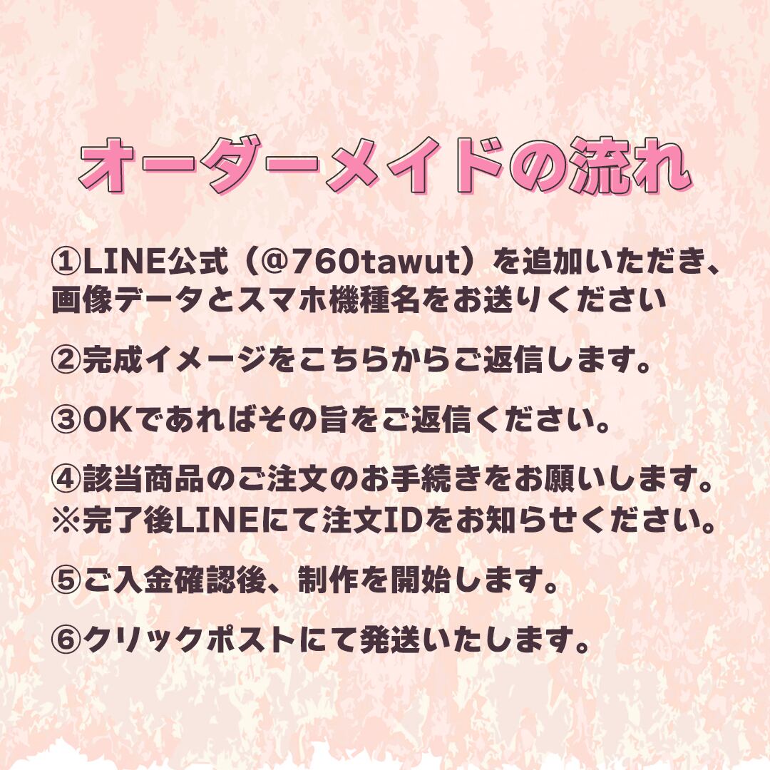 ②LINE公式(@760tawut)より、画像データとスマホ機種名、ご注文IDをお送りください